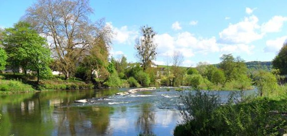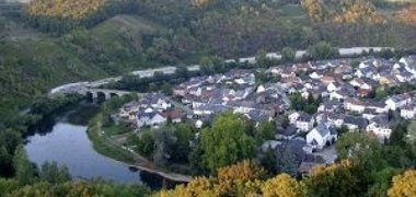 Das Dorf liegt am Rand des Kopfes einer ausgeprägten Flussschleife der Sauer. Das malerische Landschaftsbild wird von der Lage des Dorfes auf einer Nieder – und Mittelterasse der Sauer bestimmt, die bis zum Hals der Schleife in den sich aus Muschelkalk aufbauenden Gleithang übergeht. Die gegenüberliegende Sauerseite rahmt als steiler Prallhang die Flussweitung.